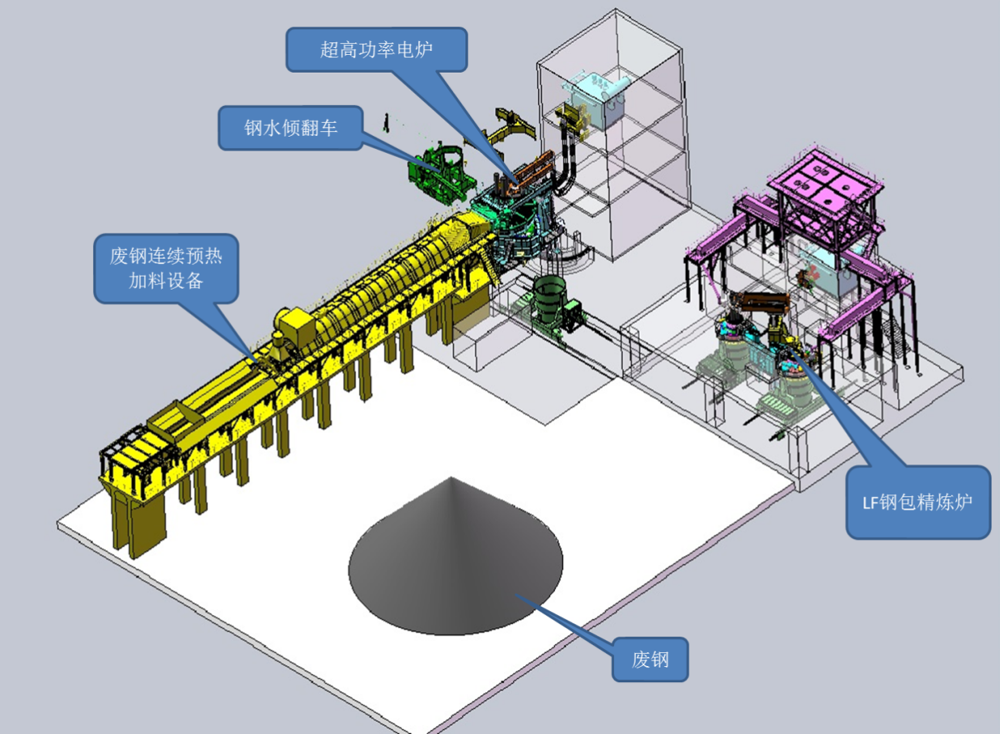 北方重工集團(tuán)有限公司在消化吸收國內(nèi)外技術(shù)基礎(chǔ)上,開發(fā)的60t至150t超高功率電弧爐、LF鋼包精煉爐及廢鋼水平連續(xù)預(yù)熱加料設(shè)備具有連續(xù)加料、連續(xù)預(yù)熱和連續(xù)冶煉的工藝特點,實現(xiàn)了煉鋼生產(chǎn)的高效、低耗和環(huán)保,主要應(yīng)用于鋼鐵冶金、機(jī)械鑄造、新材料等領(lǐng)域。