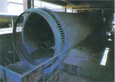 單筒冷卻機(jī)屬于回轉(zhuǎn)圓筒類設(shè)備,主要由支撐裝置、筒體部、傳動裝置、頭尾密封罩、頭尾密封裝置等部分組成。單筒冷卻機(jī)的功能是使回轉(zhuǎn)窯產(chǎn)生的高溫物料經(jīng)過冷卻機(jī)冷卻到一定溫度,再進(jìn)行運(yùn)輸、貯藏和下一步的處理。根據(jù)設(shè)備物料、工藝、工況不同可分為風(fēng)冷冷卻機(jī)、水冷冷卻機(jī)、風(fēng)冷水冷混合冷卻機(jī)。